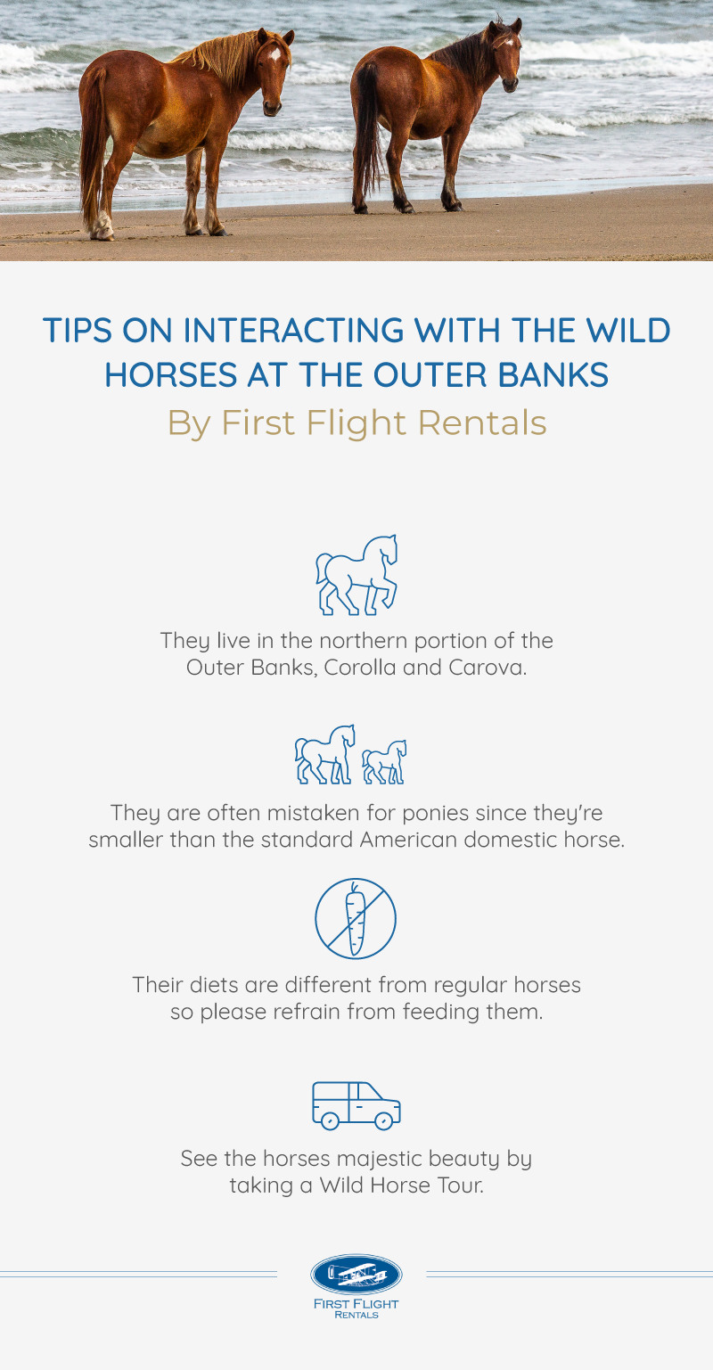 As you plan your visit to the North Carolina coast, make it a point to include a wild horse tour in your itinerary. Whether you choose to explore the rugged terrain on your own or join a guided tour, encountering the wild horses is an unforgettable adventure. Book your stay with First Flight Rentals and don't miss the chance to connect with this living piece of history during your trip to the Outer Banks!