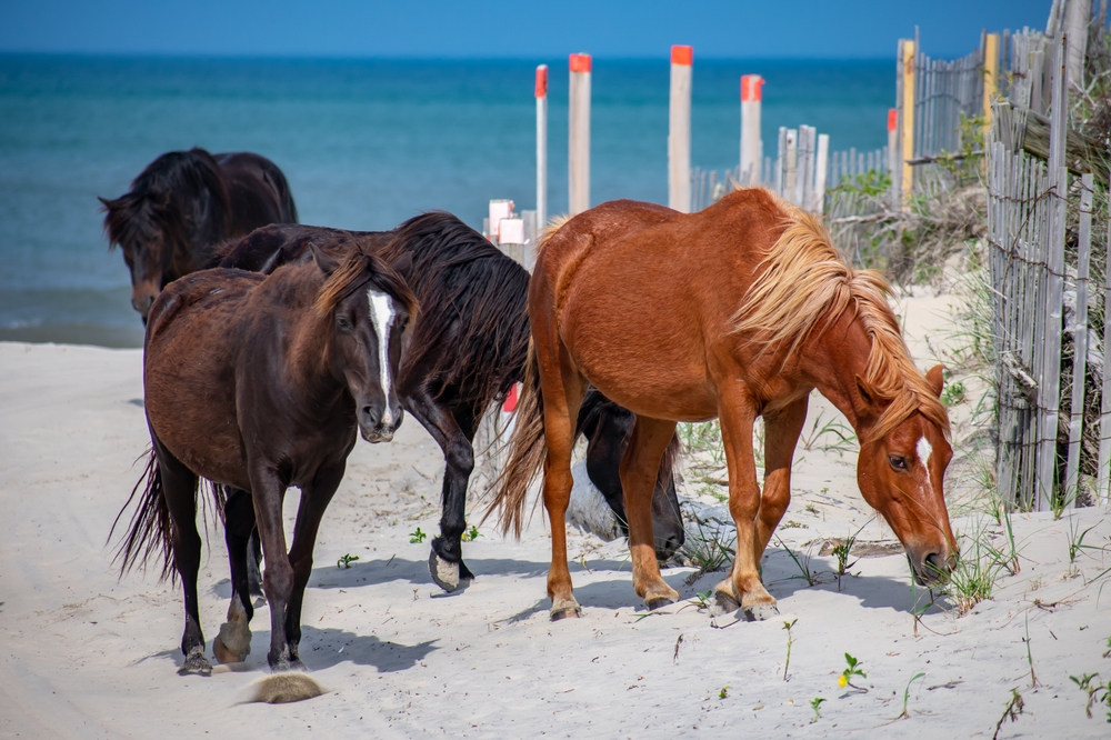The wild horses primarily roam the northern parts of the Outer Banks, including Corolla and Carova Beach, but they can also be found as far south as Ocracoke Island and Shackleford Banks. When planning your trip, remember that the feral horses are protected, and it's illegal to approach them closer than 50 feet or feed them.
